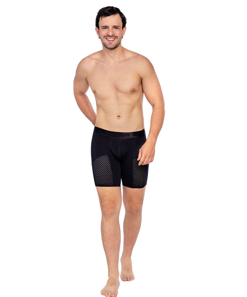 Experimenta el confort y la frescura con nuestro bóxer medio de diseño deportivo que realza los glúteos. Ofrece soporte y ajuste en la parte delantera, asegurando comodidad durante todo el día. Con mallas laterales para mayor transpiración y tela de licra que protege el color, este bóxer es ideal para tu rutina diaria o tus entrenamientos.