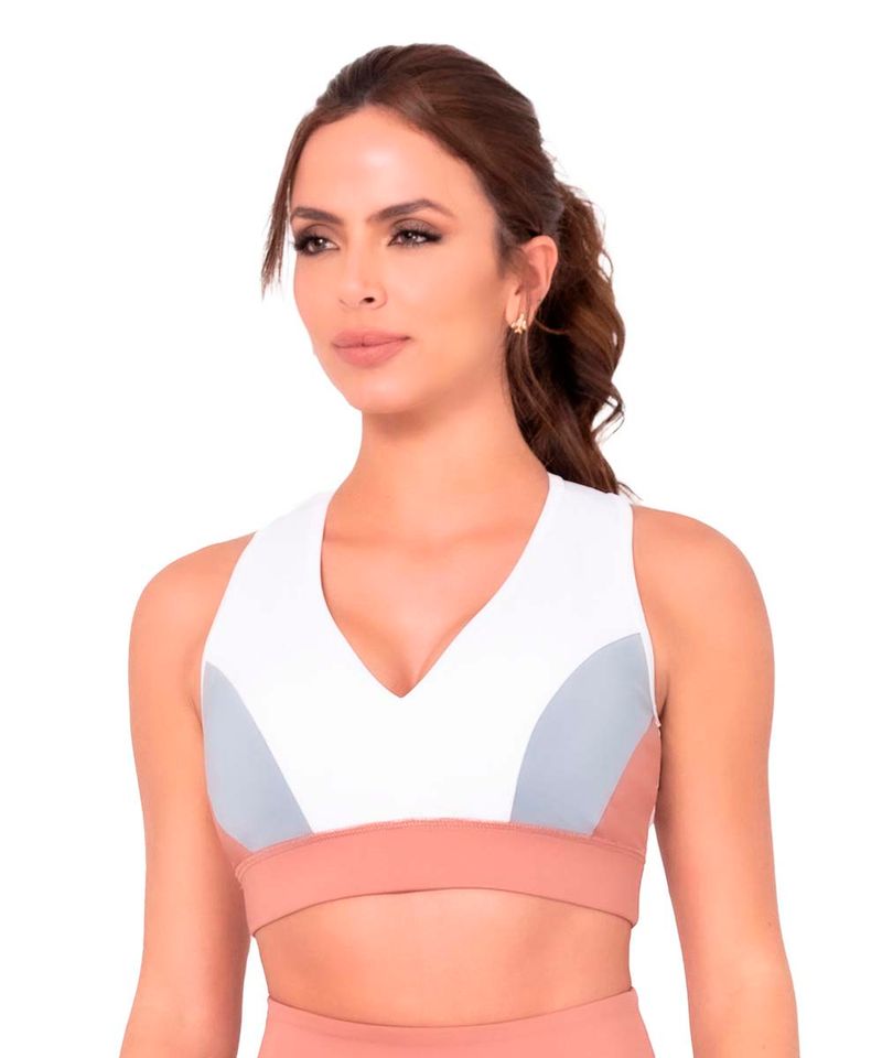 Top deportivo con soporte firme y copas removibles, diseñado con cortes en el frente que aportan estilo y funcionalidad. Su tela de secado rápido te mantiene cómoda durante los entrenamientos, y la base ancha brinda soporte adicional al busto.